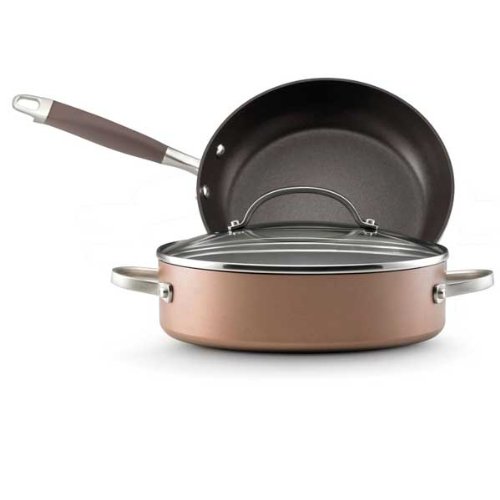 This set is perfect for preparing savory, elegant gourmet meals for friends and family. The skillet is ideal for sauteing fresh garden vegetables, searing steaks, fish or poultry. The sauteuse pan is a perfect for cooking casseroles, stews, and pasta dishes as well as braising meats and poultry. Comfortable Anolon SureGrip silicone handles and tempered glass lids add sophistication and class to this cookware that will complement every kitchen. The heavy gauge, hard-anodized aluminum ensures even heat distribution.Read more Anolon Advanced Bronze Collection Hard Anodized Nonstick Cookware Gift Set, 3-Piece